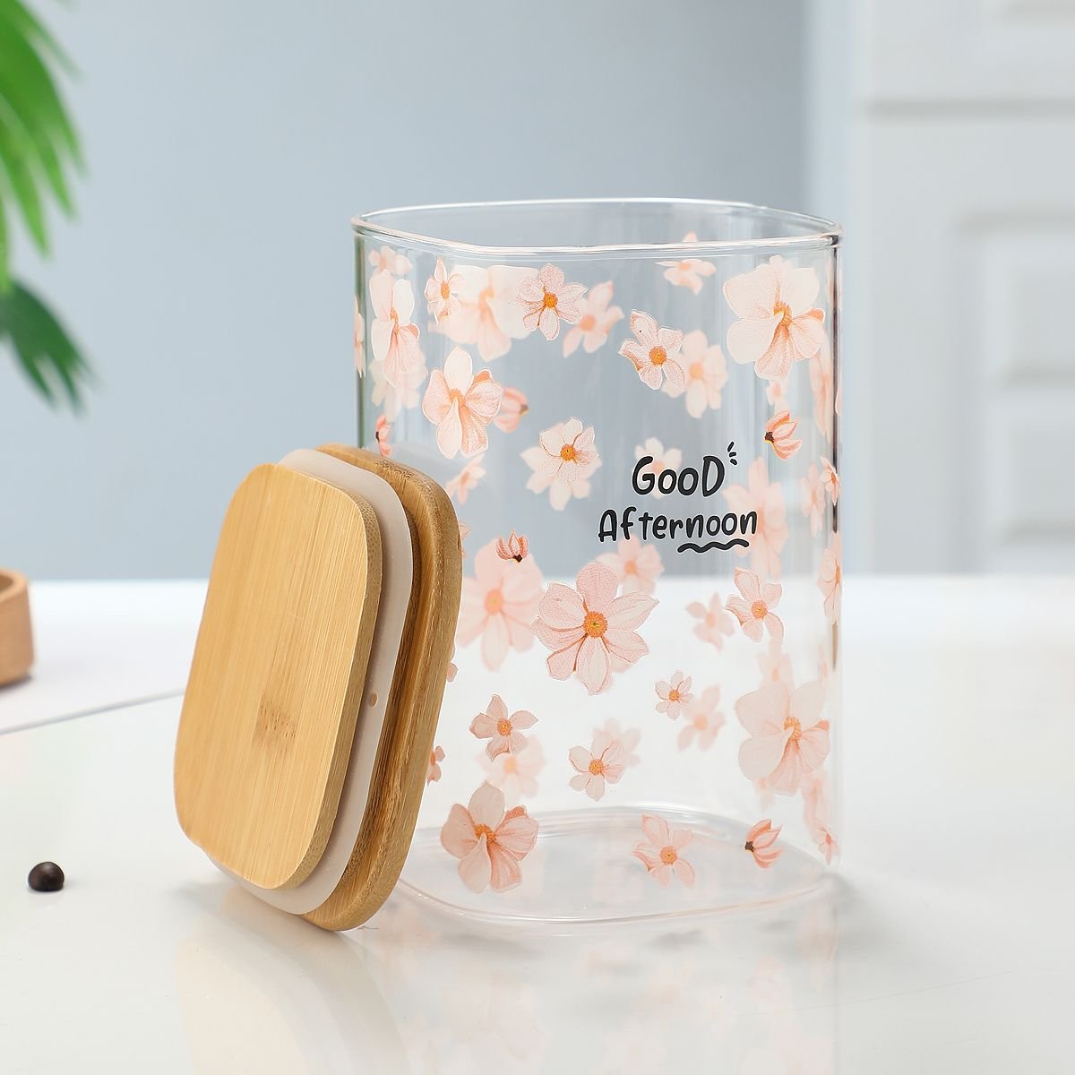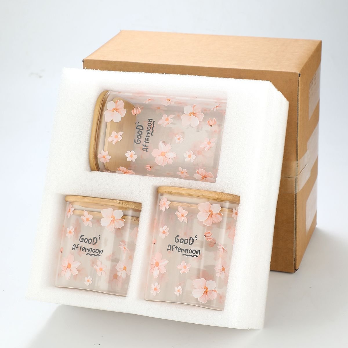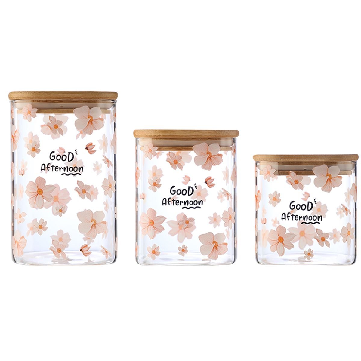 Home > 3PCS Square Glass Storage Jar with BambooLid Snack Jar Miscellaneous Grain Jar Storage Jar Seasoning Jar Candy Jar Tea Jar Coffee Jar