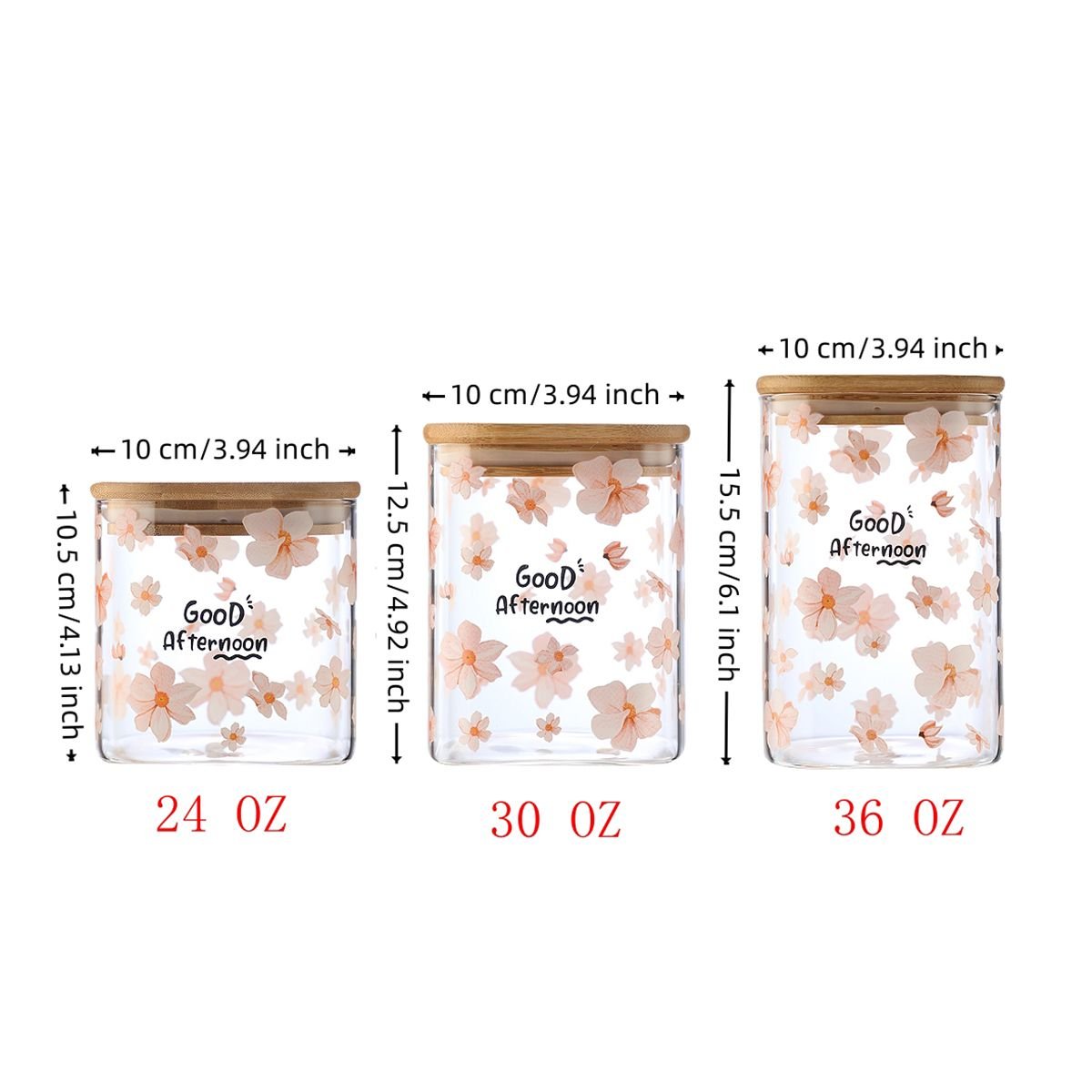 3PCS Square Glass Storage Jar with BambooLid Snack Jar Miscellaneous Grain Jar Storage Jar Seasoning Jar Candy Jar Tea Jar Coffee Jar