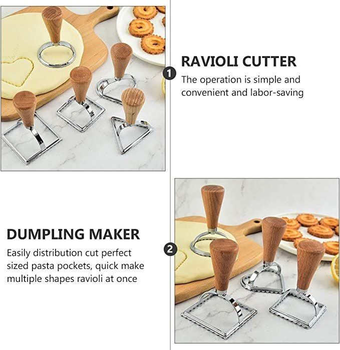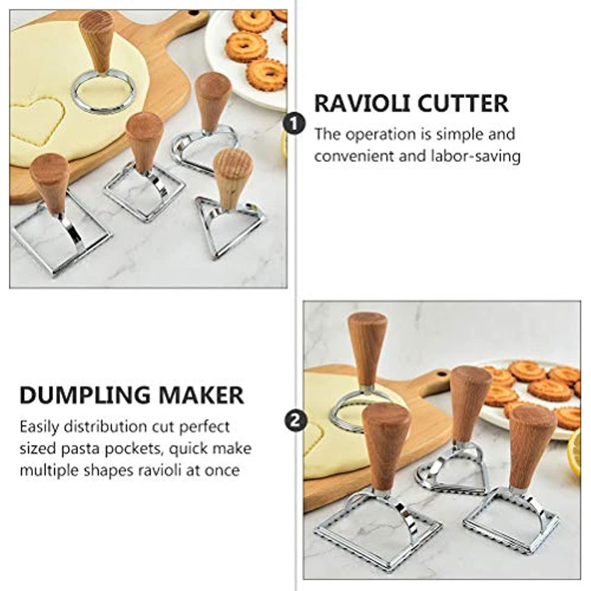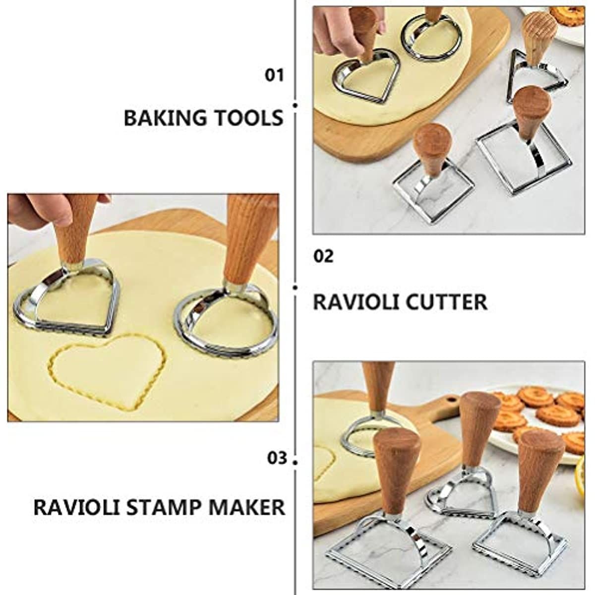 5 Pack Cookie Stamp Maker Cutter Wooden Handle Lace Pastry Mold With Fluted Edge