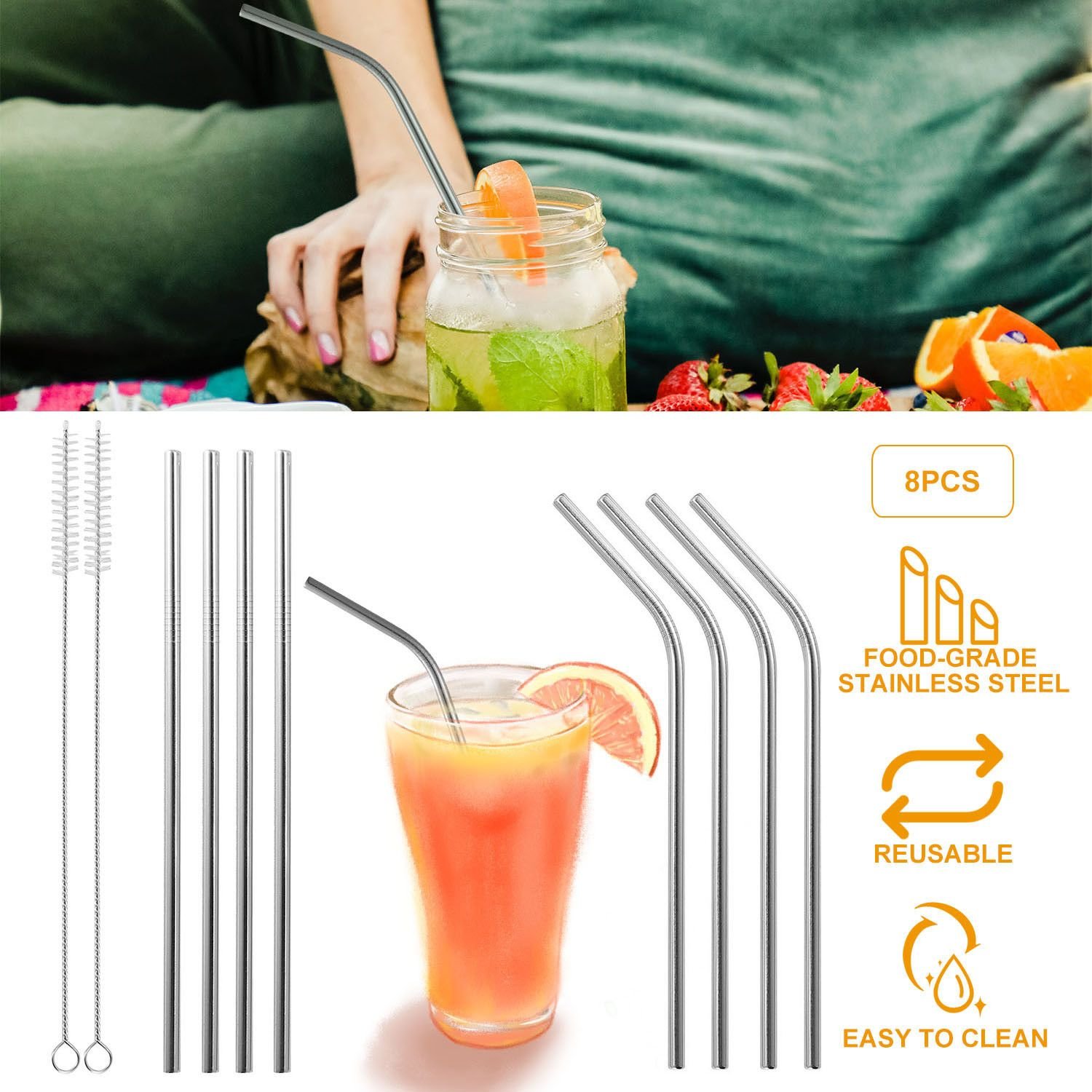 *Economical 8PCS to Meet Your Needs*:Including 4pcs 8.5in straight straws and 4pcs 8.5in bent straws; our reusable drinking straws allows you to share delectable beverage with you families and friends freely.