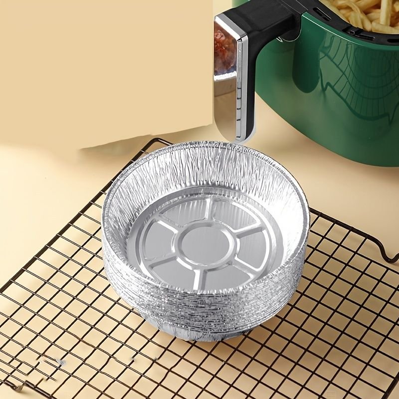 30pcs/set Air Fryer Disposable Aluminum Foil Liners; Non-stick Air Fryer Liner; Round Tin Foil Pans; Safe Round Foil Pie Pans For Baking; Storage