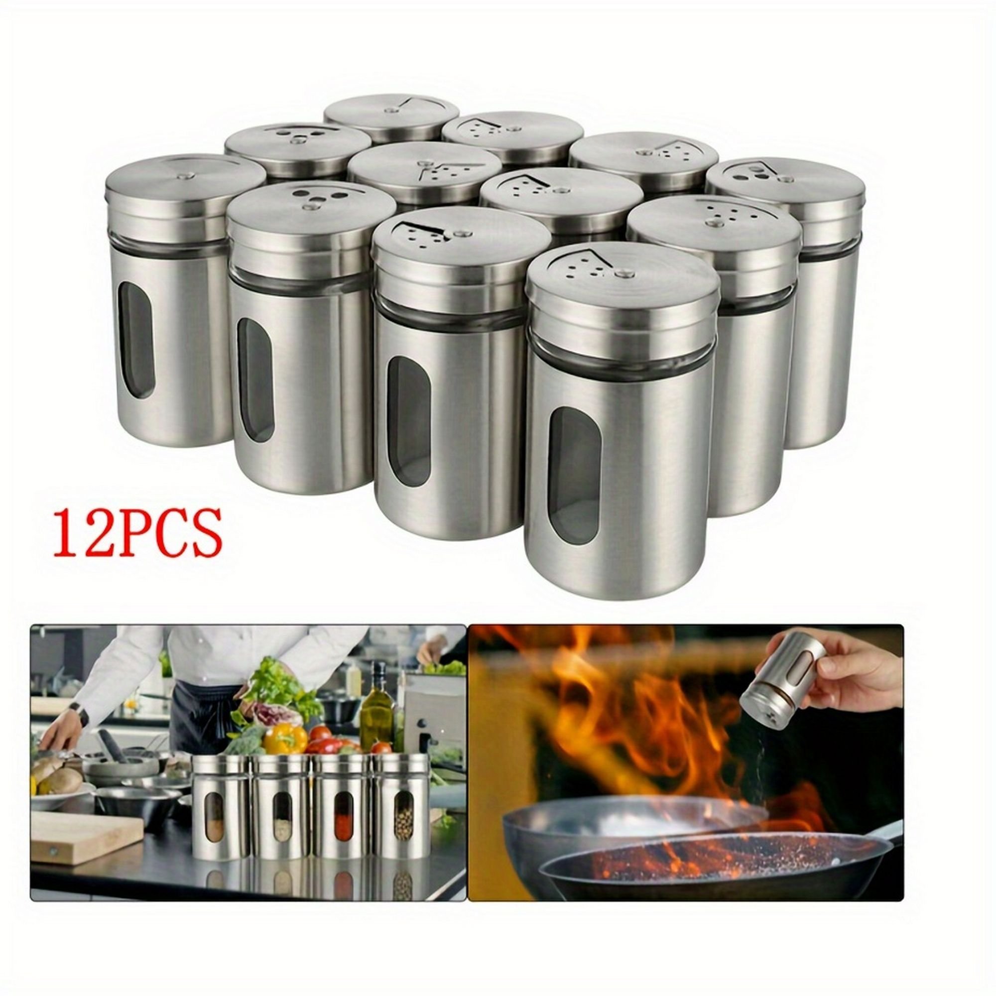 1.12pc Stainless Steel & Glass Spice Shakers - Premium Kitchen Essentials for Salt, Pepper & MSG, Modern Design for Indoor BBQs & Picnics, Durable Utensils for Organized Cooking