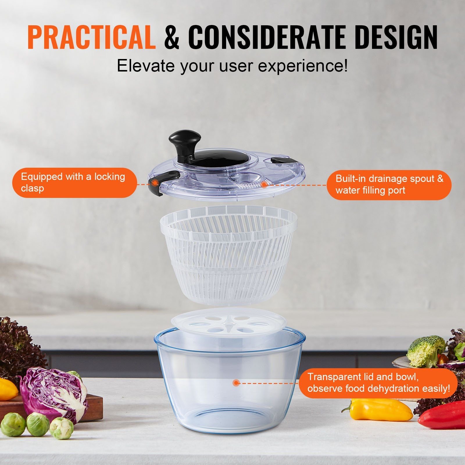 Home > VEVOR Glass Salad Spinner, 4.75Qt, One-handed Easy Press Large Vegetable Dryer Washer, Lettuce Cleaner and Dryer with High Borosilicate Glass Bowl Lid